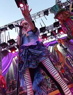 The Mad T Party Band was a nighttime event at Disney California Adventure at the Disneyland Resort in Anaheim, California. Anchored in the Hollywood Studios subsection of the Hollywood Land section of the park, Mad T Party was premiered on May 26, 2012.[1] The event, which succeeded ElecTRONica, was inspired by Tim Burton's Alice in Wonderland.[2]