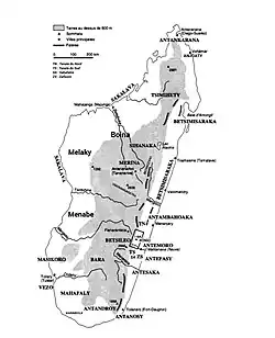 Irrigated paddy fields were developed in the central highland Betsileo Kingdom and were extended with terraced paddies throughout the neighboring Kingdom of Imerina a century later.[52] The rising intensity of land cultivation and the ever-increasing demand for zebu pasturage had largely transformed the central highlands from a forest ecosystem to grassland by the 17th century.[56]