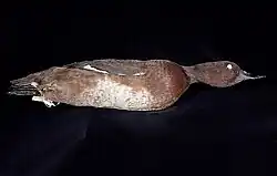 The duck probably started to decline dramatically sometime in the late 1940s or early 1950s. The cause of decline was the introduction of numerous fish species in the lake that killed most of the pochard chicks and damaged nesting sites. Adult birds are also likely to have become victims of introduced fishes. Rice cultivation, cattle grazing on the shores, burning of shore vegetation, introduced mammals (rats), gill-net fishing and hunting are all factors that led to the duck's disappearance from the lake.[9] The last record of multiple birds at Lake Alaotra is from 9 June 1960 when a small flock of about 20 birds was spotted on the lake. Despite the rarity of the species in 1960, a male was shot, and the specimen was held by the Zoological Museum Amsterdam, and later the Naturalis Biodiversity Center.[10] There is a very dubious report of a sighting made outside Antananarivo in 1970.[9]