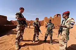 On October 23, 2014, the French government announced plans to base helicopters and 50 French troops here, under the Operation Barkhane. The French Army built a forward operating base.[2] The French military is about 200 to 250 soldiers on January 1, 2015.[3]