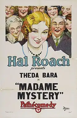Madame Mystery is a 1926 American silent comedy film starring Theda Bara, Oliver Hardy, and James Finlayson, directed by Richard Wallace and Stan Laurel, co-written by Laurel, and produced by Hal Roach.[1] Footage from this film was reused in the Hal Roach two-reeler 45 Minutes From Hollywood (released December 26, 1926).