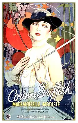 Mademoiselle Modiste is a 1926 American silent romantic comedy film produced by and starring Corinne Griffith and distributed by First National Pictures. Robert Z. Leonard directed Griffith in a story based on a popular 1905 Victor Herbert operetta on Broadway, Mlle. Modiste,[1] with a libretto by Henry Martyn Blossom, which was similar to the MGM film The Merry Widow. It is now considered a lost film.[2][3]