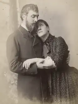 When the Haymarket company returned to London, Kendal remained with it; a fellow member was William Hunter Grimston, who acted under the stage name W. H. Kendal. The two were married on 7 August 1869. She adopted his stage surname,[n 5] and after their marriage they almost always appeared in the same productions.[1] They remained at the Haymarket until the end of 1874, during which period she played the four parts listed above and seventeen other leading roles.[8] Among the new plays in which she starred were a series of "fairy comedies" by W. S. Gilbert: The Palace of Truth (1870, as Princess Zeolide), Pygmalion and Galatea (1871, as Galatea), and The Wicked World (1873, as Selene); in Gilbert's drama Charity (1874) she played Mrs Van Brugh.[31]
