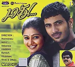 Madhu is a 2006 Indian Tamil-language romantic drama film written and directed by K. Thennarasu, starring Jithan Ramesh, Priyamani and Ashish Vidyarthi.[1] The film was released on 12 May 2006.