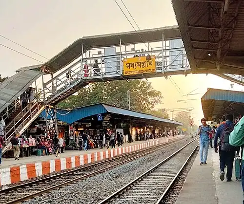 Madhyamgram railway station is a Kolkata Suburban Railway station in the town of Madhyamgram. It serves the local areas of Madhyamgram, Badu and Sajirhat in North 24 Parganas district, West Bengal, India.