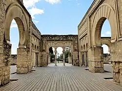 Madinat al-Zahra or Medina Azahara (Arabic: مدينة الزهراء, romanized: Madīnat az-Zahrāʾ, lit. 'the radiant city'[1]) was a fortified palace-city on the western outskirts of Córdoba in present-day Spain. Its remains are a major archaeological site today. The city was built in the 10th century by Abd ar-Rahman III (912–961), a member of the Umayyad dynasty and the first caliph of Al-Andalus. It served as the capital of the Caliphate of Córdoba and its center of government.