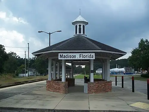 Madison station is a former train station in Madison, Florida. It was served by Amtrak's Sunset Limited, the national railroad passenger system. Service has been suspended since Hurricane Katrina struck the Gulf Coast in 2005. Madison station is unique in that its waiting area consists of gazebos.