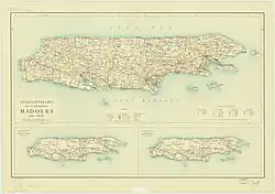 Madoera Residency (Dutch: Residentie Madoera) was an administrative subdivision (Residency) of the Dutch East Indies located on the island of Madura and with its capital at Pamekasan.[1][2] It also included some smaller islands off Madura such as the Kangean Islands and Sapudi Islands.[1] The Residency was divided into 4 districts (afdeelingen): Pamekasan, Bangkalan, Sampang and Soemenep.[2] It existed from the 1880s, when the Dutch established more direct control over the Island, to 1942 when the Japanese invaded the Indies, except for a brief period 1928-31 when it was divided into two smaller residencies (east and west).