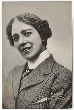 Mae Hotely (October 7, 1872 – April 6, 1954) was an American silent film actress.[1] She was in Lubin comedy films.[2] She appeared in more than 80 films between 1911 and 1929. Born in Maryland as Maye Shearor, in August 1902 she married the film director Arthur Hotaling, creating her stage name as a play on his. She died in Coronado, California.