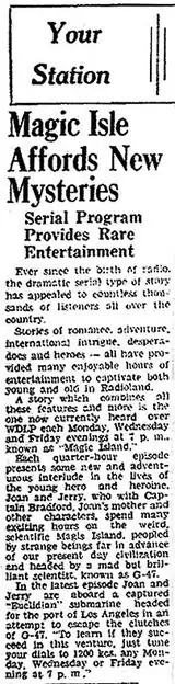 Article about Magic Island on the Panama City News-Herald radio page (December 15, 1940)