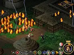 Magic & Mayhem (working title: Duel: The Mage Wars) is a fantasy/mythology-themed real-time strategy game designed by Julian Gollop[2] and developed by Mythos Games. It was published by Virgin Interactive Entertainment (European release) in late 1998, and by Bethesda (North American release) soon after in 1999. Although the game received generally positive criticisms,[3][4] it met a quiet public reception.