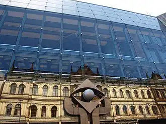Laterna magika (Czech: Laterna magika), largely considered the world's first multimedia theatre, was founded as a cultural program at the 1958 Brussels Expo.[1] It launched its official activity on 9 May 1959, as an independent company of the National Theatre, performing at the Adria palace in Prague. Wonderful Circus, which premiered in 1977, is the most frequently performed theatre piece in Central Europe, and has remained in the repertoire ever since. Laterna magika now is one of the ensembles of the National Theatre, based at the New Stage of the National Theatre in Prague. Laterna magika productions blend various genres, ranging from dramatic acting through affording a dominant role to dance and ballet to mime and Black Theatre. All of their productions have been original works directly created for the company, not ready-made pieces, which, with a few exceptions, have never subsequently appeared in the repertoire of another company. The fundamental principle (interaction between film projection and live dramatic action) has been gradually supplemented with new technologies, for instance, digital projection or new media, including real-time programmable software.