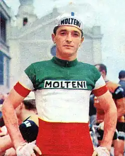 The Maglia tricolore (tri-colour jersey)[1] is the distinctive jersey worn by the "Champion of Italy" in a particular discipline of cycling. The mesh is composed of three horizontal coloured bands around the chest. From top to bottom the colours are: green, white and red.