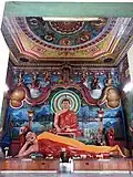 A number of additional buildings were built for the temple including a library and a school which was completed in 1957 and 1959 respectively, followed by a bell tower in 1969 and later a multi-purpose building in 1991.[2] In 2001, the temple was chosen as the first temple in Malaysia to house the Buddha's relics which then received by the temple's Chief Monk, E. Inda-rátana Maha Thera. The two bone fragments of the Buddha are currently displayed within the temple's main prayer hall.[4] Pema-rátana's ashes were enshrined in a stupa erected at the temple compound.[2] His legacy can also be seen to this day in the form of the temple's ficus religiosa (Bodhi tree), said to be a descendant of the original Bodhi tree bought to Anuradhapura in Upatissa Nuwara (present-day Sri Lanka) by bhikkhunī Saṅghamittā under which Buddha attained enlightenment. The tree sapling was then brought from then British Ceylon in the 20th century and planted in the temple compound after Pemaratana's demise in 1927.[2] The main prayer hall called Sīma is adorned with carvings by Sri Lankan artisans with all the materials used for the decorations originally coming from Sri Lanka.[7]