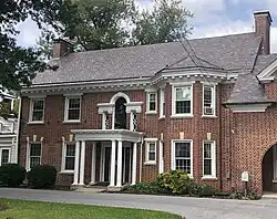 In December 1917, Haines bought 199 acres (0.311 sq mi; 81 ha)[14] of what became a 211-acre (1⁄3 sq mi; 85+1⁄3 ha) farm east of York in Springettsbury Township.[28] Named Haines Acres,[7] along what would later be named Haines Road,[28] he built his home on the farm in 1922.[7] Haines sold the home to a local surgeon in 1952. The surrounding farm was sold to local real estate firm Epstein & Sons in November 1953, and it was developed into the Haines Acres subdivision. He gave $2,500 to the Boy Scouts in exchange for the housing development being named after him. The farm buildings were eventually demolished and their land became part of the development in the 1970s.[7] Haines Acres Shopping Center, constructed beginning in 1962 in the southwest corner of the subdivision, also bears his name.[7] Haines' former home remains as part of a Presbyterian church at 311 Haines Road.[29] From Haines Acres, he moved into "The Hermitage", which he built across the street from the Shoe House.[24]