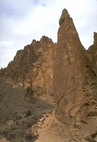 ![]() Leslie Gulch rock spire, Mahogany Mountain, Oregon. Photo: BLM (2008). | |