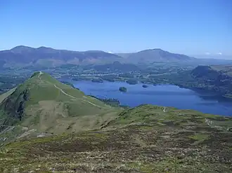 Maiden Moor is a fell in the English Lake District, it stands six kilometres (3+3⁄4 miles) south of the town of Keswick and is part of the high ground that separates the Newlands Valley and Borrowdale; it has a modest height of 576 m (1,890 ft) and so fails to be mentioned on many UK mountain lists but it does have a separate chapter in Alfred Wainwright’s Pictorial Guide to the Lakeland Fells.