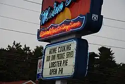 The Maine Diner is a diner in Wells, Maine.[1] It serves breakfast, lunch, and dinner. The diner, which has a seating capacity of 90 and a year-round staff of about 60, serves an average of 1,200 to 1,500 patrons on a peak summer day.[2] The restaurant is known for its seafood chowder and lobster pie and other Down East fare.[3][4] It serves breakfast all day. Many of its vegetables and herbs come from a garden behind the building.[4][5]