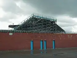 The temporary "Gene Kelly Stand" in the corner of the ground