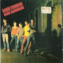 The cover shows the band members in front of a low-budget hotel called "Loves House", which was actually a brothel. To the right of the band, a transvestite could be seen by a wall.[2][3]