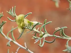 Maireana georgei, commonly known as slit-wing bluebush or satiny bluebush,[2] is a flowering plant in the family Amaranthaceae and is endemic to Australia. It is a grey-green perennial shrub with woolly branches and small flowers.[3]