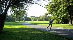 The loop section of the bicycle path is 3.1 kilometres (1.9 mi) long. This does not include the path outside the fenced area, along Sherbrooke Street.