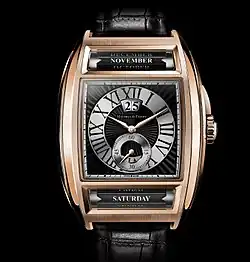 Chapter Two was developed by watchmakers Daniel Roth, Peter Speake-Marin and Roger Dubuis, and is a triple calendar wristwatch with a big date and rollers indicating days and months.