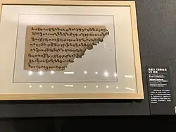 There is an Old Uyghur translation of the Tocharian text, called Maitrisimit nom bitig. It is a much more complete text and has been dated to between the eighth and eleventh centuries.[4][5][6] The fragments of the Tocharian text come from six different manuscripts, five from the Shikshin Temple and one from Qocho.[1] Albert Grünwedel and Albert von Le Coq discovered the Tocharian text during the third German Turfan expedition in 1906, when the Tocharian languages had been extinct for more than a millennium and were unknown to modern linguists.[7] The Uyghur text is represented by four manuscripts, two from Turfan, one from Qomul dated 1067 and one of uncertain provenance in the collection of Ōtani Kōzui.[8]