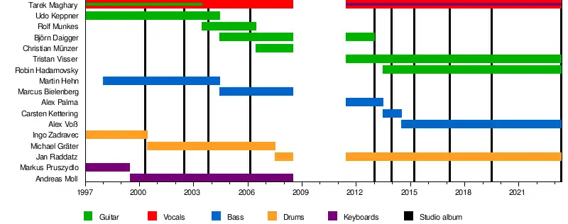 - Tarek Maghary – vocals, keyboards (guitars 1997–2003)