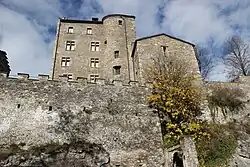 The existence of the Vidomnat is mentioned as early as 1179.[4] The presence of the Majorie tower is attested as of 1221, when its St Michel's Chapel is mentioned for the first time. The Majorie is then called the Tour de Sion (Sion Tower). On 15 January 1373, the castle was bought by Bishop Guichard Tavelli, and served from then on as the official residence for the Prince-bishops of Sion. The castle then became the Prince-bishops' seat of power. They preferred it to the more austere Tourbillon Castle, which was less accessible. The Majorie tower probably contained reception rooms, and the buildings that served as bishops' habitation have not been preserved. In 1529, a fire destroyed the castle. It was rebuilt in 1536 under Bishop Adrian I of Riedmatten.[2]