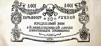 2. ^ Tkhorzhevsky, Robert (1996). "Деньги Махно" [Makhno money]. Numbon (in Russian). 6 (36): 1–8. Retrieved 14 April 2022.