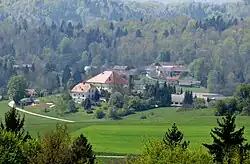 A mansion west of the settlement on a small hill above the left bank of the Temenica River dates to the 16th century. A contemporary chapel next to the main building was extended and remodelled by Ivan Vurnik in the 1930s.[3]