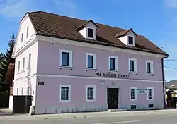 • The Russian Czar Inn (gostilna Pri Ruskem carju) stands at Vienna Street (Dunajska cesta) no. 217. It is an L-shaped masonry business and catering structure. The year 1868 is carved into the stone casing around the door facing the street. The structure preserves original vaulted rooms and many older architectural elements.[8] The building's name refers to the fact that Alexander I of Russia stopped at the site in 1821 during the Congress of Laibach, as noted on the plaque over the door.