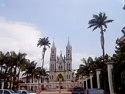 Notable buildings include the Cathedral of Santa Isabel, of the Roman Catholic Archdiocese of Malabo. It is a church in the Gothic Revival style, built between 1897 and 1916. Its architect was Luis Segarra Llairadó, paid by contributions from the government of Spain and the donations of the faithful. It has two spires 40 meters high. In January 2020 a fire due to an electrical failure caused the calcination of part of its structure, currently there is work ongoing for an early restoration in November 2021.[17]