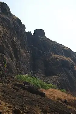 Malang Gad is different from other forts in Maharashtra. Whereas other forts have several gates and multiple watchtowers, the art of the main gate itself. With a wall with no machicolations to fire at the enemy and no fortifications, Malang Gad is one of the few forts to depend completely on natural aspects of the hill to defend itself.[1]