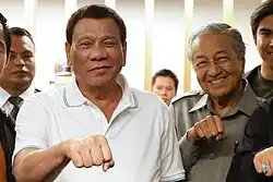The Philippine government offered numerous attempts to Malaysia to resolve the dispute through an International Court of Justice (ICJ) ruling in the United Nations, although recent Philippine government attempt for intervention on the Ligitan and Sipadan dispute between Malaysia and Indonesia on the basis of its claim to Sabah was rejected by the ICJ in 2002.[69][70] In 2016, Malaysia officially closed its Sabah borders from the Philippines, effectively rising the cost of goods in three provinces in the southern Philippines, namely, Tawi-Tawi, Sulu, and Basilan prior to the infiltration of illegal immigrants and persistent kidnapping by militant groups based in the southern Philippines. In the same year, the Filipino President Rodrigo Duterte announced in a live telecast that his new administration will pursue the Philippine claim on eastern Sabah through a peaceful dialogue with the Malaysian government.[71] However, prior to the recent meeting between Malaysian Prime Minister Najib Razak and President Duterte in late 2016, both leaders have agreed to set aside the issues on "back burner" as President Duterte want to focus more to the social condition improvements of Filipino migrants in Sabah.[72] Both leaders have reach an agreement to establish a school, hospital and a consulate in Sabah to make an easy contact with the Philippine central government for any problems facing by the Filipino community in the state, while deporting "problematic and undocumented Filipino refugees and immigrants" that has long been a thorn in bilateral ties for both countries.[73]