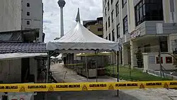 On 27 March, two areas in Simpang Renggam, Johor were subjected to the order till 9 April as those areas alone contributed to a high 61 positive cases.[58] On 30 March, this order is applied to a few hamlets in Sungai Lui, Hulu Langat District, Selangor due to a detection of a cluster involving a madrasa with 71 positive cases.[59] City One, a residential complex in Jalan Munshi Abdullah, Kuala Lumpur which its residents are mainly foreign workers was subjected to the extended order on 31 March as 17 cases involving residents of the tower were detected.[60] Selangor Mansion and Malayan Mansion, apartment buildings located at Jalan Masjid India, Kuala Lumpur, were subjected to EMCOs on 7 April, as 15 positive cases were detected within the two buildings,[61] while Jalan Masjid India and its surrounding areas were subjected to EMCOs on 14 April.[62] Similarly, an EMCO order was placed for over 15,000 residents living around the Kuala Lumpur Wholesale Market in Selayang on 20 April until 3 May, following the detection of 20 cases and one fatality from the area.[63]