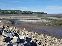 Bay at low tide at the mouth of the Malbaie River, in La Malbaie. This bay also receives the waters of the Mailloux River (west shore) and of the Côte à Pontage Creek (east side)..