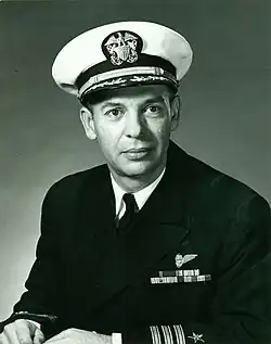 - ^ National Personnel Records Center, FOI request 1-7062411857, 1/21/2010; Branches of Service: USN/USNR; Dates of Service: Enlisted Service 2/22/1943-3/4/1946, Reserves 3/5/1946-9/10/1950, Officer Service 9/11/1950-12/26/1955, Reserves 12/27/1955-7/1/1973; Rank/Grade: Captain/06; Place of Burial: Arlington National Cemetery.
