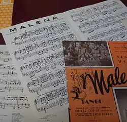 Malena is a famous tango song from 1941 whose lyrics were written by Homero Manzi and music composed by Lucio Demare. It was performed for the first time by Lucio Demare’s orchestra in the Boite Novelty, sung by Juan Carlos Miranda. This version was recorded in the movie El Viejo Hucha, directed by Lucas Demare and with Osvaldo Miranda who did the cinematography. The movie was released on January 8, 1942, and April 29, 1942. This version was successfully recorded at RCA Victor by the Anibal Troilo orchestra, with the voice of Francisco Fiorentino. It has been considered one of the most beautiful tangos of all time.