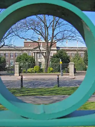 Malet Lambert opened in September 1932, established by the local education authority, as a replacement for the overcrowded Craven Street Municipal Secondary established in 1893 by the school board as Hull's second higher-grade board school.[1] The original site was on Holderness Road but it was turned down because it was too expensive at £500. A site was chosen along James Reckitt Avenue in the East Hull suburbs, overlooking East Park.[2] The main school building was designed as a two-storey Neo-Georgian building,[3] with a central spine encompassing offices, library, assembly hall and gymnasium. All the classrooms were to face south, extending out in two wings with the science laboratories along the sides.[2] Originally, girls were taught in the first floor classrooms and boys on the ground floor, a system which was kept in place for many years.[2]