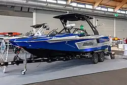 Malibu introduced the Axis Wake brand in 2009 as an "entry-level brand" that "doesn't have all of the electronics and bells and whistles that a Malibu does", such as having a manual wedge as compared to the electronically controlled wedge of Malibu models.[14] As of 2019, Malibu is marketing five models under the Axis Wake brand, the A20, A22, A24, T22, and T23, with the T23 selling between $65,000 and $100,000.[21] The Axis line has developed to changing consumer taste by incorporating highly sought after options such as Malibu's Surf Gate and Power Wedge III