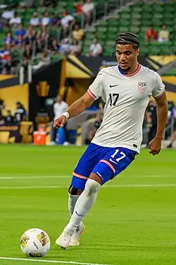 In May 2022, Tillman applied for a one-time switch to play for the United States national team.[22] On May 31, the switch was approved by FIFA.[23] The next day, he made his senior debut for the United States in a 3–0 win in a friendly match against Morocco.[24]