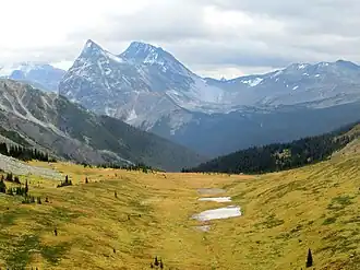Mallard Peak is located on the border of Alberta and British Columbia. It is Alberta's 82nd most prominent mountain. It was named in 1920 by Arthur O. Wheeler. The summit of the mountain is said to look like a mallard duck.[1][2]