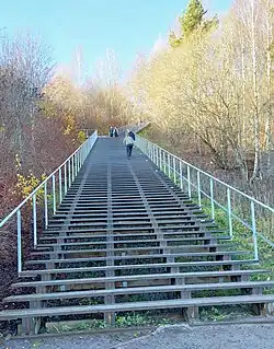 In 2017, and again in 2021 a professional piano moving company carried a 200-kilogram (440 lb) instrument up the steps to the top of the hill.[2] In between the two attempts the wooden steps had been renewed.