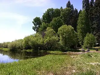 The west shoreline of Upper Klamath Lake and adjacent Agency Lake serves as a travel corridor for many nontropical migrant birds on their spring and fall migrations. Mature Ponderosa pine and Douglas fir forests come right to the edge of Upper Klamath Lake with small pockets of aspen, willow and cottonwood along the shoreline in some locations, which serve as nesting sites for bald eagles and osprey.[3]