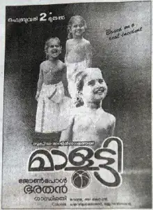 Malootty is a 1990 Indian Malayalam-language survival drama film directed by Bharathan, starring Shamili in the title role along with Jayaram and Urvashi. The story is set in the 1980s, in which a girl is trapped in a drill hole and survives after many hours. The title drawings were done by Bharathan's son. Shamili won the Kerala State Film Award for Best Child Artist.[1]