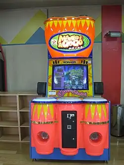Mambo a Go Go, is a music video game produced by Konami as part of their BEMANI franchise of games. Players must rhythmically beat conga drums as colored notes fall from the top of the screen. There are 3 drums, each one divided into three sections, giving players a maximum of nine places to hit.