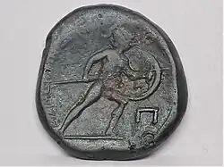 The Mamertines held the town of Messina for over 20 years. They changed it from a bustling town of farmers and traders to a raiding base. The Mamertines became pirates on land and sea. Taking advantage of the war-weary Sicilians, they looted the nearby settlements and captured trade ships on the strait, carrying their plunder back to their base. They captured prisoners and demanded tribute. During this period, they struck coins featuring their name and images of their gods and goddesses. Their exploits made them rich and powerful. They began travelling further inland, even as far as Gela, and demanding tribute.[2]