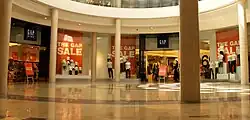 Mamilla Mall contains 300,000 square feet (28,000 m2) of retail space.[28] Its 140 stores appeal to all economic strata, from high-end international chains Tommy Hilfiger and Abercrombie & Fitch; to Israeli designer boutiques such as Castro, Dorin Frankfurt, and Ronen Chen; to mid-range restaurants and a "supermarket-style" pharmacy.[2][18] There are numerous chain stores selling fashions and cosmetics, as well as gift and souvenir stores.[29] The Gap store, which opened in the mall in August 2009, is the chain's first store in Israel.[30] Among the cafes are branches of Café Rimon, Aroma Espresso Bar, and Spaghettim.[31]